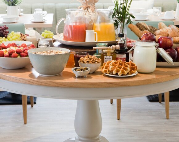 Breakfast at The Charm, Brighton means a delicious choice of the very best produce, always locally sourced where possible and served to you with care by our attentive staff. Buffet table offers choices of cereal, fruit salad, plain and fruit yogurt, fresh croissant, fresh fruit juices. Cooked breakfasts are served with choice of full English seven days a week and during the weekend you can try even our eggs Benedict, smoked salmon with scrambled egg and our special Morning elixir. We also cater for gluten and dairy-free diets.